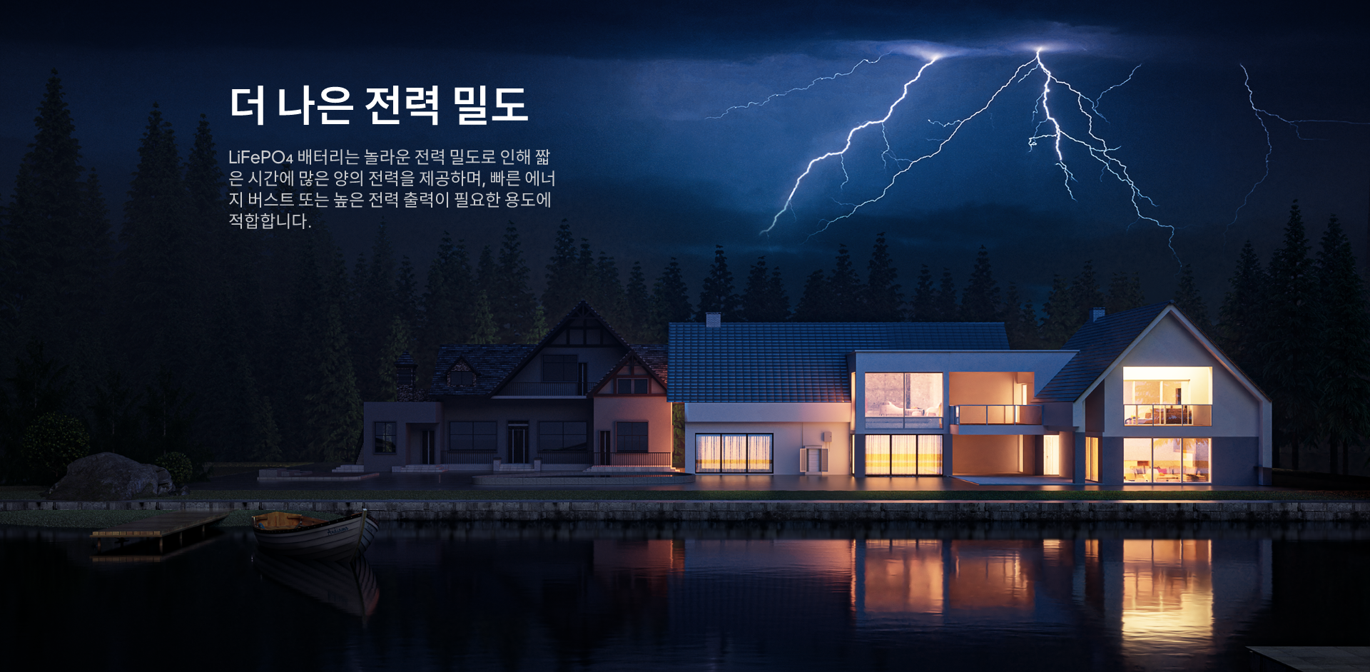 시판중인 다른 리튬리온 배터리에 비해 리튬인산철 배터리는 충전 및 방전 시 발열성이 적어서 열폭주의 위험을 줄이고 안전성 및 효율성을 높입니다.