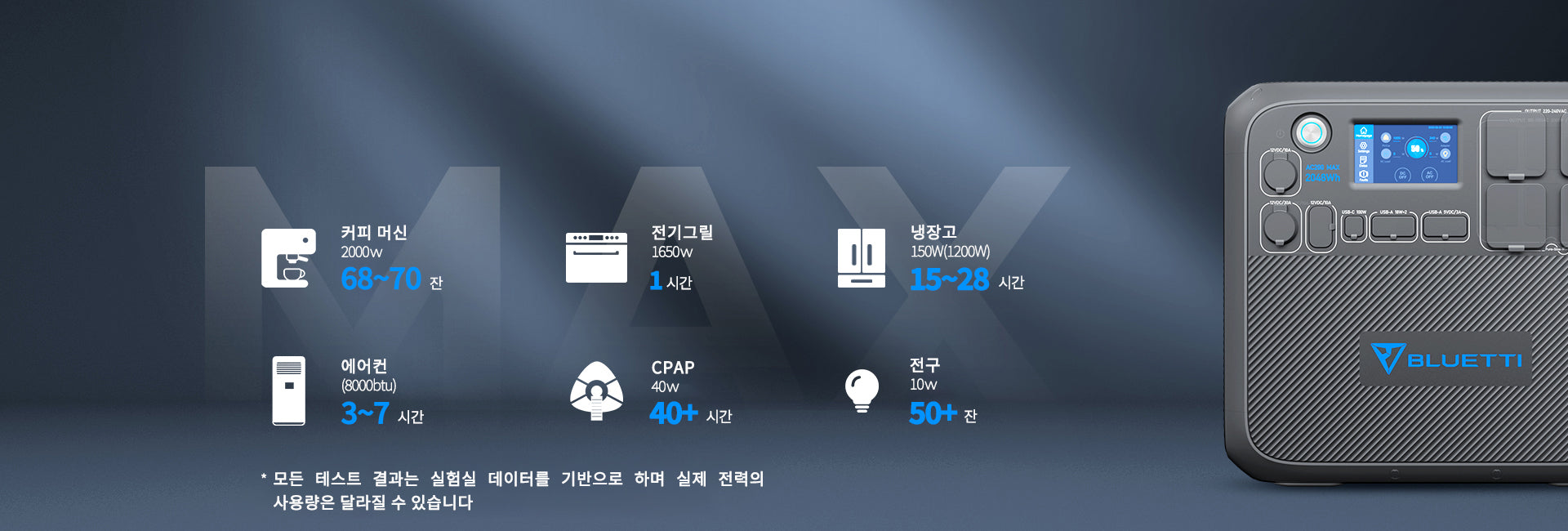 - 2. 최대 입력: AC200MAX의 경우 1,400W; AC200P의 경우 1,200W.