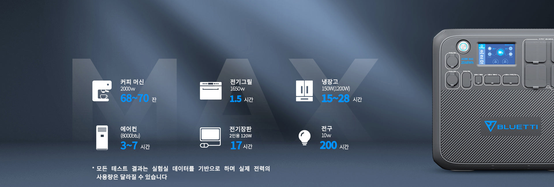 - 2. 최대 입력: AC200MAX의 경우 1,400W; AC200P의 경우 1,200W.