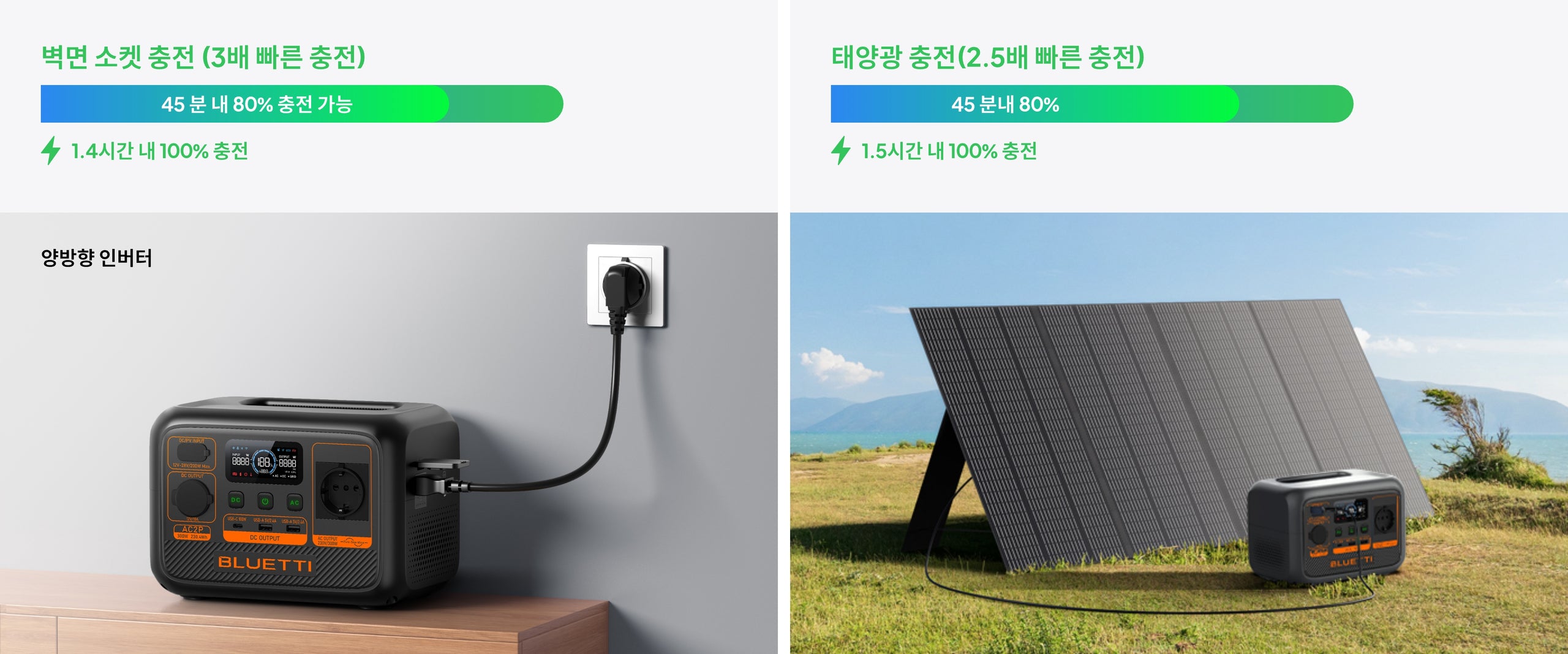 단 45분 만에 80% 용량으로 충전하여 야외 활동, 긴급 구호, RV 여행 등에 완벽한 동반자가 됩니다.