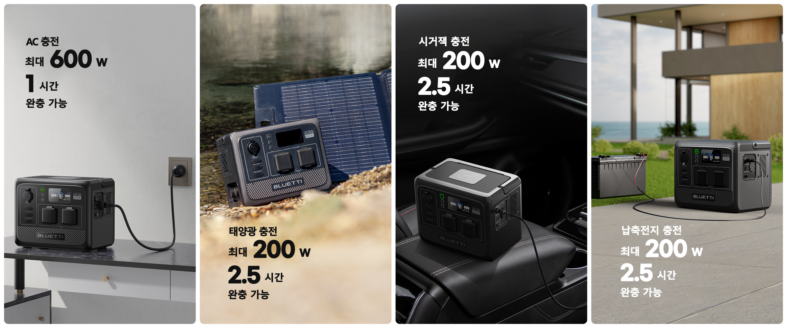 A:BLUETTI 앱에서 터보 모드를 켜면 최대 600W의 입력으로 빠르면 1-1.5시간 내에 완충할 수 있습니다.