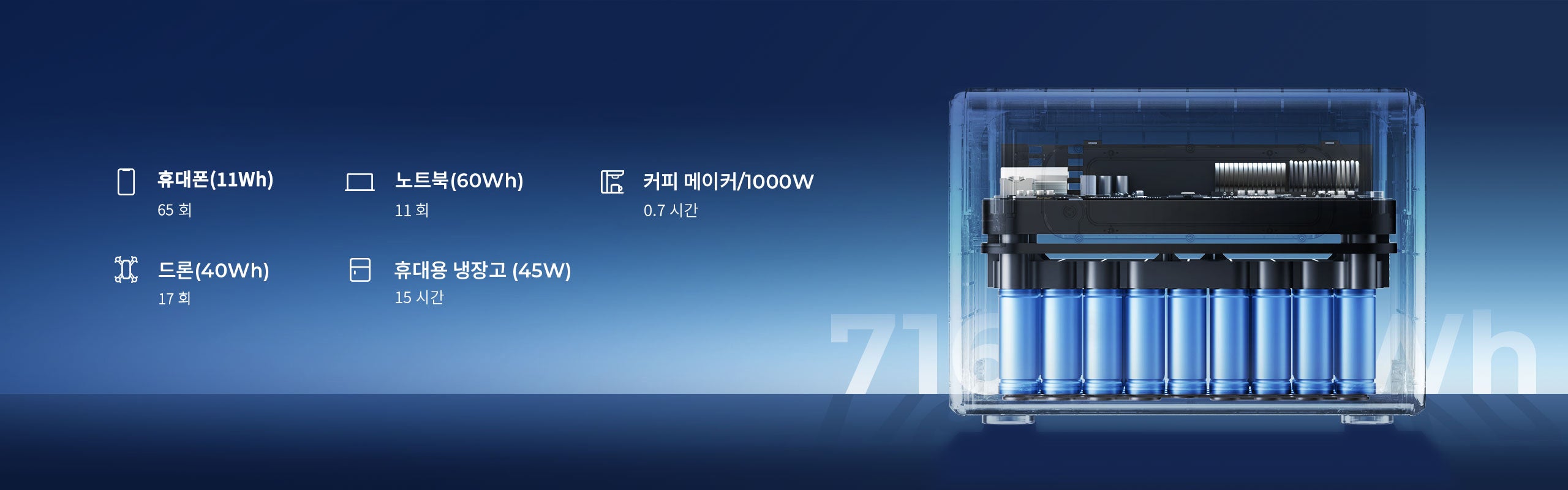 716Wh × 90% × 90% ÷ 500W ≈ 1.2시간
